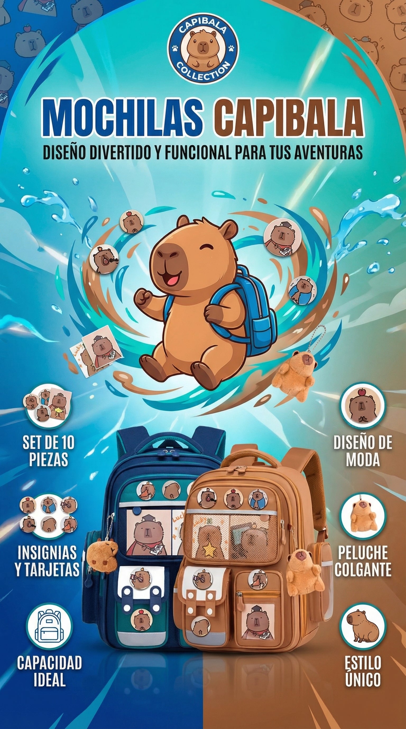- Diseño Único y Tierno: Estampados exclusivos de capibaras que te harán destacar en cualquier lugar.